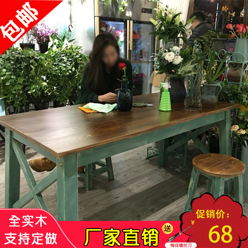 实木餐桌美式做旧复古桌长方形阳台餐饮咖啡桌服装花店桌子工作台热门设计联盟服务商