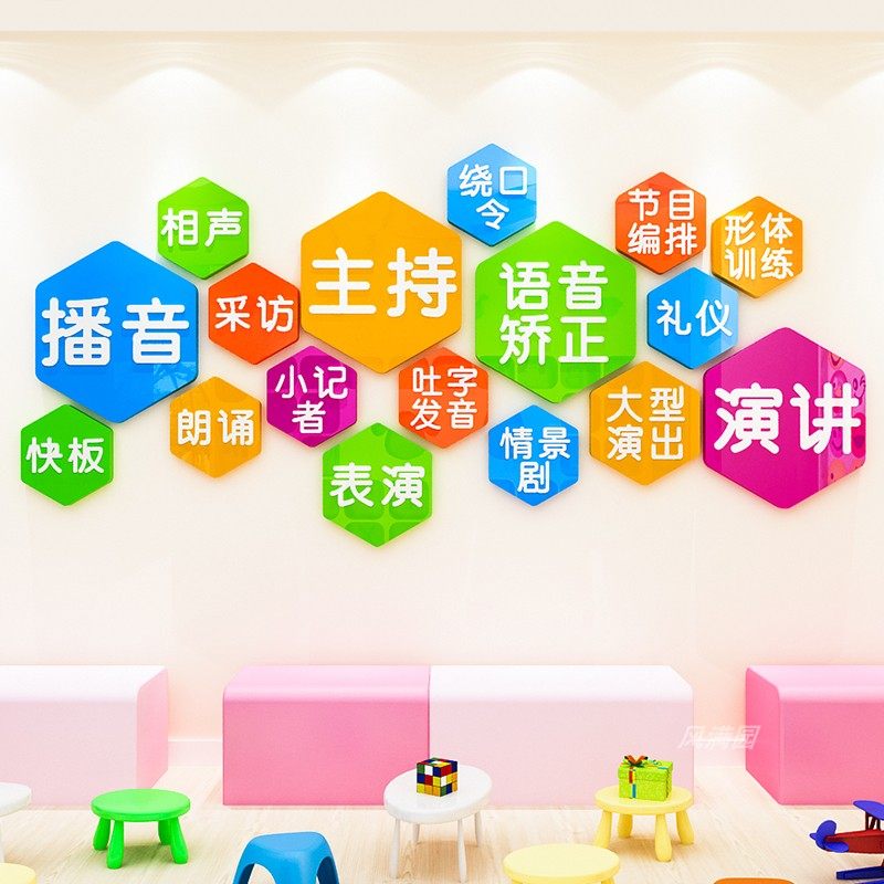 播音主持口才文字宣传培训机构培训班墙面装饰3d立体自粘墙贴纸热门设计联盟服务商