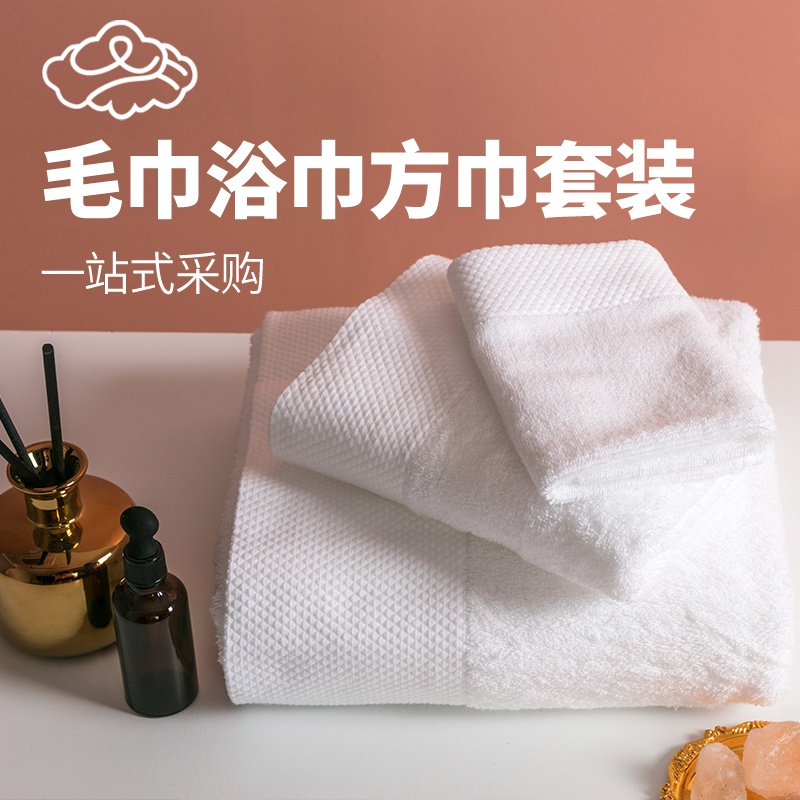 五星级酒店宾馆民宿专用毛巾浴巾套装三件套纯棉全棉白色加厚吸水热门设计联盟服务商