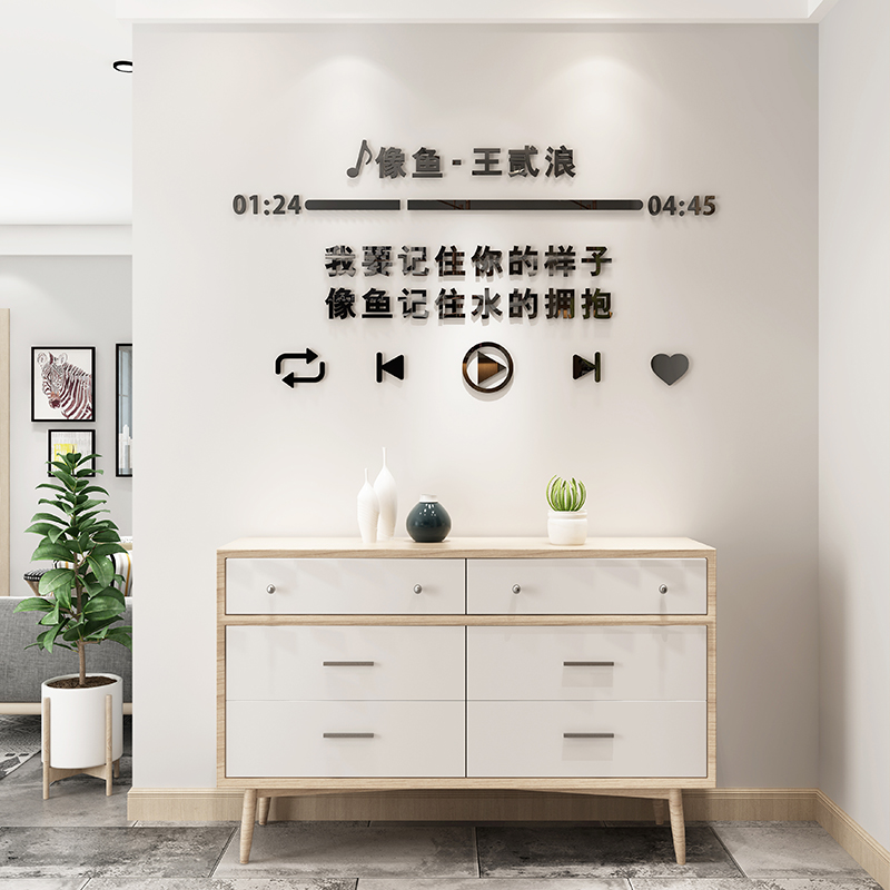 北欧风3d立体墙贴卧室装饰歌词贴纸房间背景墙自粘贴画创意网红贴热门设计联盟服务商