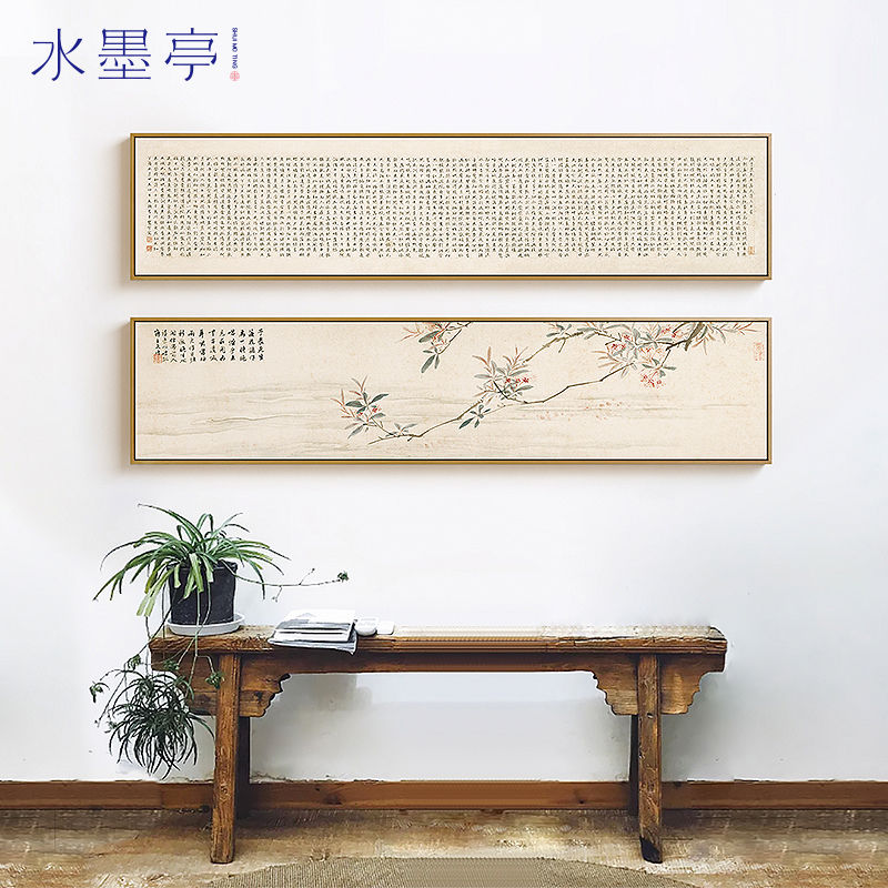 水墨亭 唐寅·落花诗 新中式客厅横幅挂画卧室床头装饰画花卉壁画热门设计联盟服务商